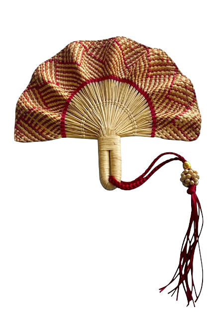 Handwoven from natural iraca palm, this fan blends vibrant red accents with organic natural tones for a bold, timeless look. Perfect for warm days, festive outfits, and artisanal-inspired interiors.