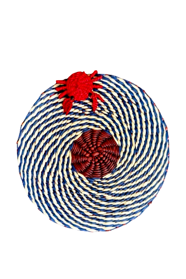 Handwoven Coasters from natural iraca palm by Colombian artisans, these coastal-inspired coasters feature intricate marine motifs that bring a fresh, beachy elegance to any table